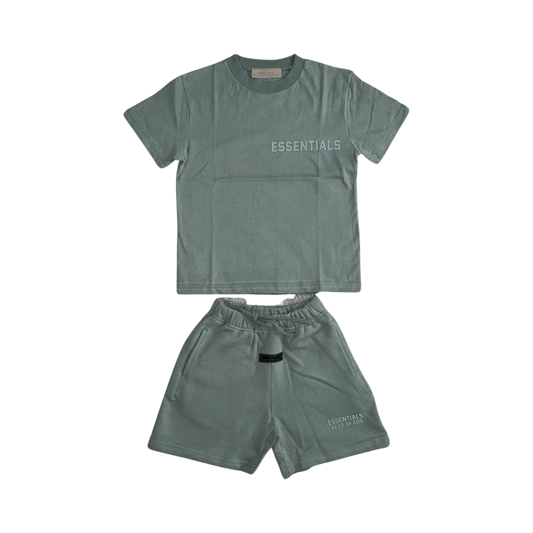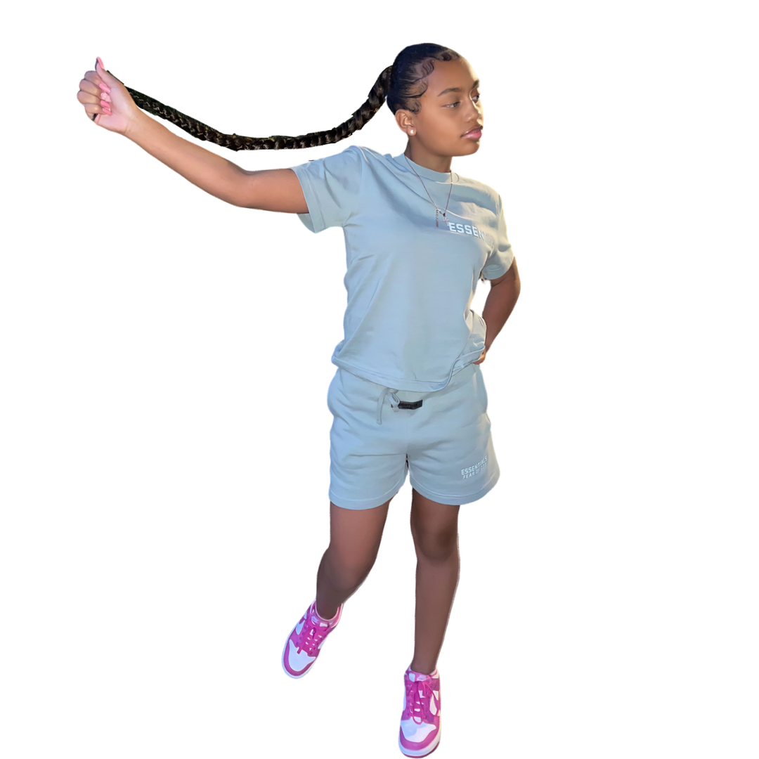Kids Teal Blue Cotton jersey T-shirt and Teal BLUE Logo Shorts
