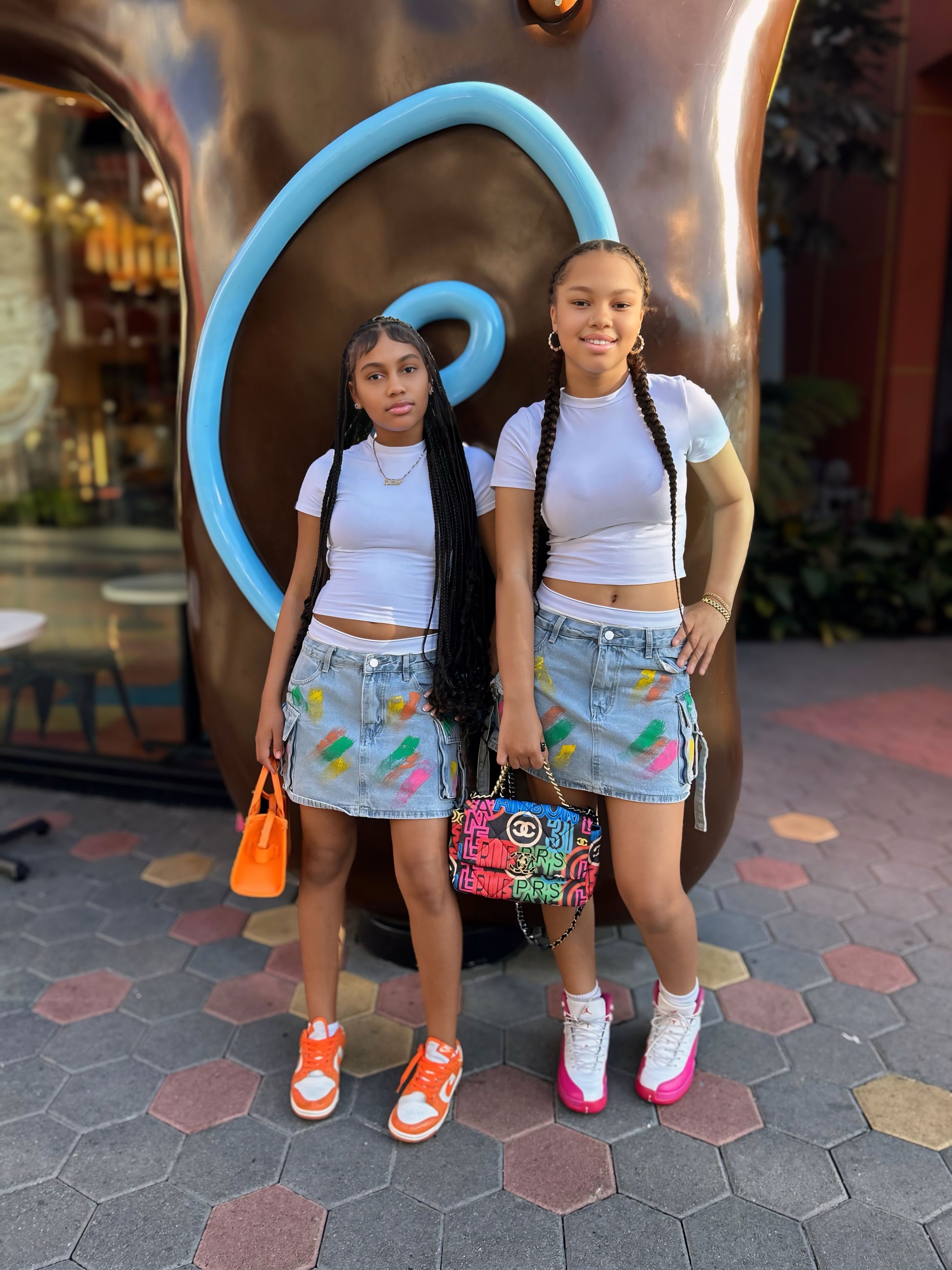 Denim Skirt with a Splash of Paint😍 with an attached half underwear Style on waist line.
